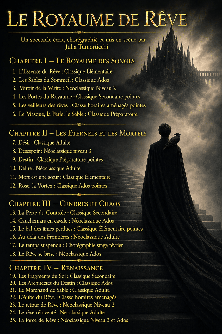le programme de votre spectacle enfant “Le Bal des Princesses” et ado/adulte “Le Royaume de Rêve” du dimanche 31 mai 2026.